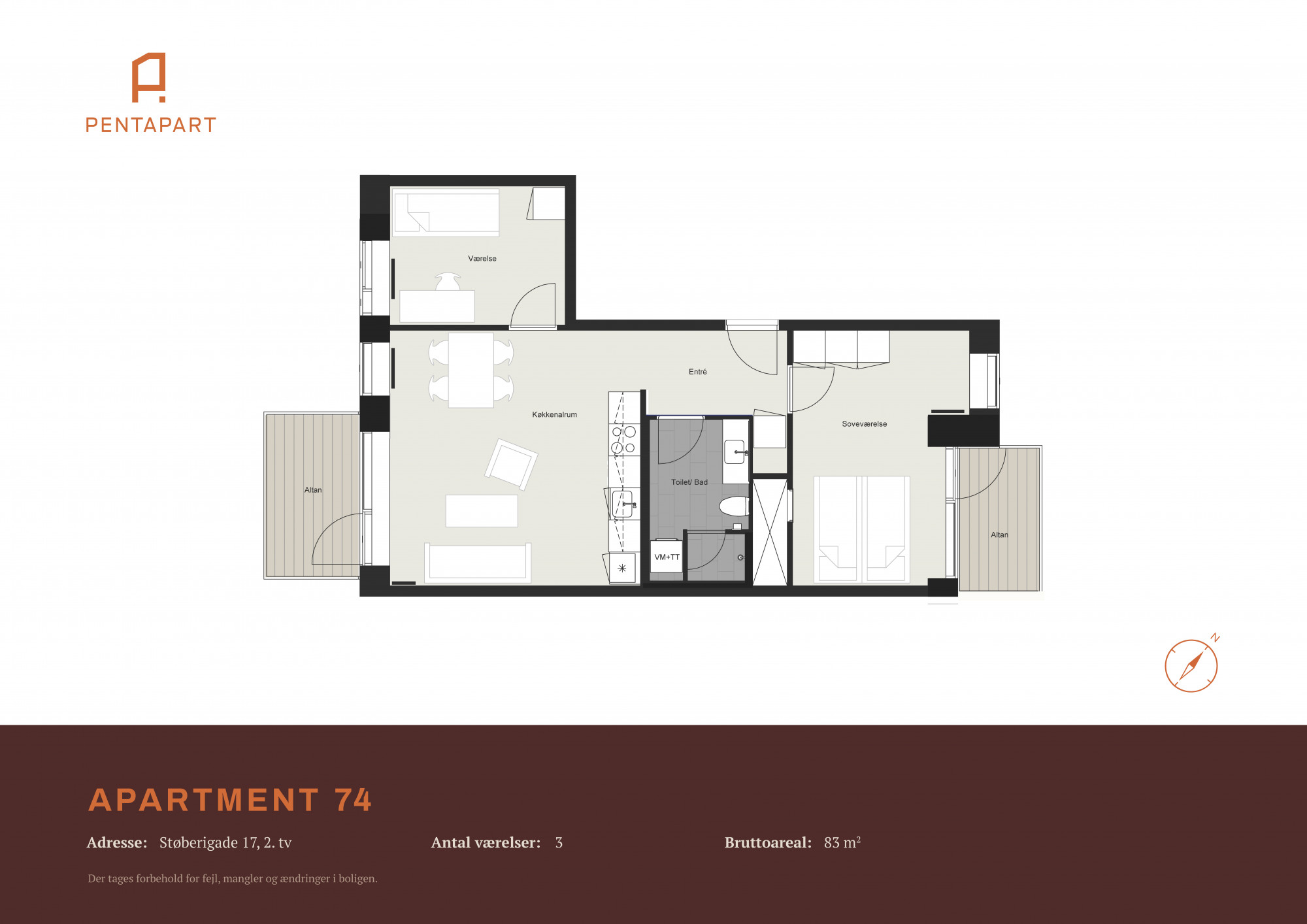 3 måneders depositum + 1 måneds forudbetalt husleje, opkræves ved lejekontraktens underskrift.